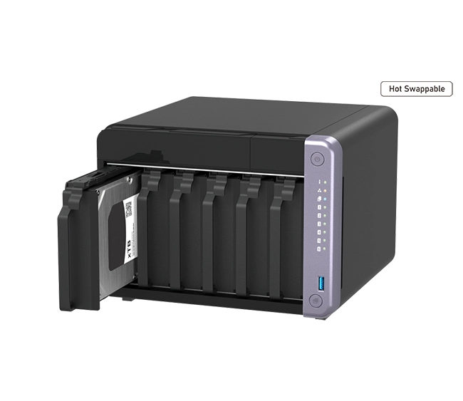 - 6-bay NAS with high-speed 10 GbE and 2.5 GbE connectivity