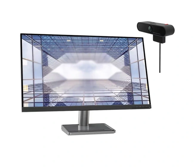 Lenovo L32p-30 31.5″ 4K UHD IPS monitor bundled with Lenovo LC50 Full HD webcam, integrated speakers, USB-C hub, HDMI 2.0, and DisplayPort 1.2—perfect for hybrid work, video calls, and professional productivity.