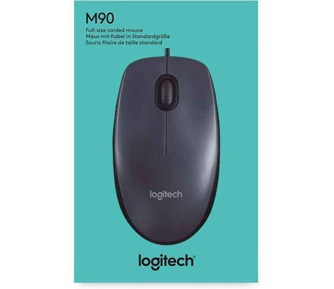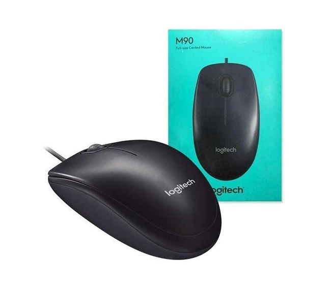Logitech USB Mouse – M90, a reliable wired optical mouse with 1000 DPI, ambidextrous design, plug-and-play USB connectivity, and durable construction—ideal for home, office, and classroom use.