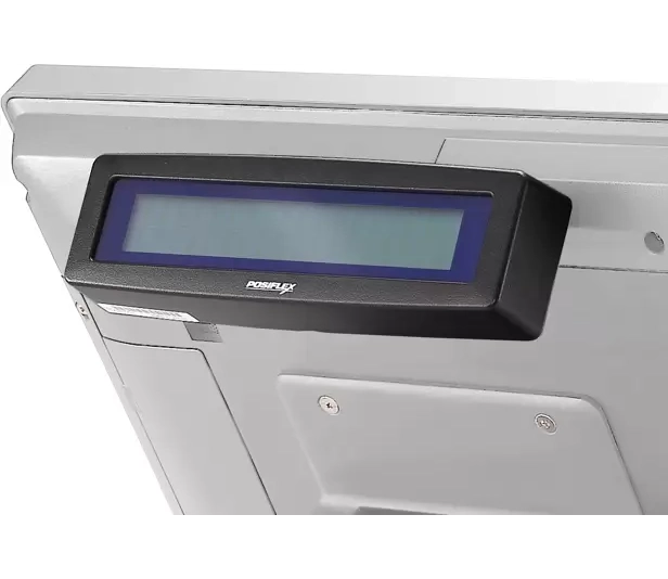 The PD-350UE features a 2×20 character LCD display that ensures clear and legible visibility under diverse lighting conditions. Its rear-mounted design integrates neatly with Posiflex XT terminals, minimizing space usage on the counter. Both the white and black textured variants provide a clean, professional appearance suitable for retail, hospitality, and service industries.