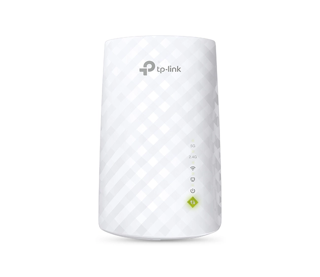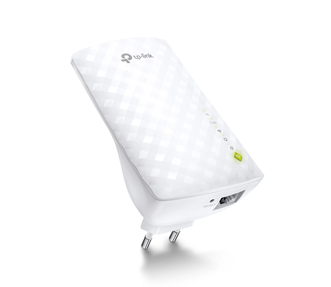 TP-Link AC750 Mesh Wireless N Wall Plugged Range Extender – TL-RE200 with OneMesh™ support, dual antennas, Ethernet port, and smart signal LED for extended Wi-Fi coverage.