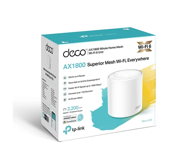 Experience ultra-fast, whole-home coverage with the TP-Link AX1800 Whole Home Mesh Wi-Fi 6 System – DECO X20-3 (3-Pack), delivering up to 1.8 Gbps speeds, support for 150+ devices, and advanced security in one seamless network.