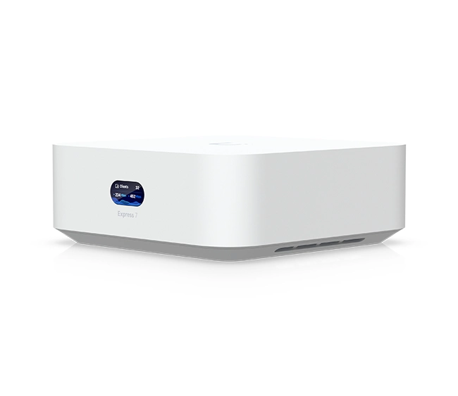 Ubiquiti UniFi Express 7 (UX7) is a compact UniFi OS gateway with integrated Wi-Fi 7 access point, offering tri-band wireless, advanced security, USB-C power, and centralized UniFi management for modern home and small business networks.